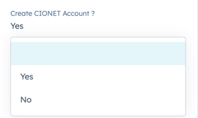 - Onboard them. In Belgium, we manually create a CIONET account for them (by clicking "YES" on the 'Create CIONET Account' field on HubSpot, see below)
