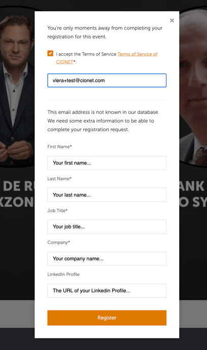 What happens: If the email is found in our database (meaning they have a CIONET account, even if not logged in), the system recognises them.