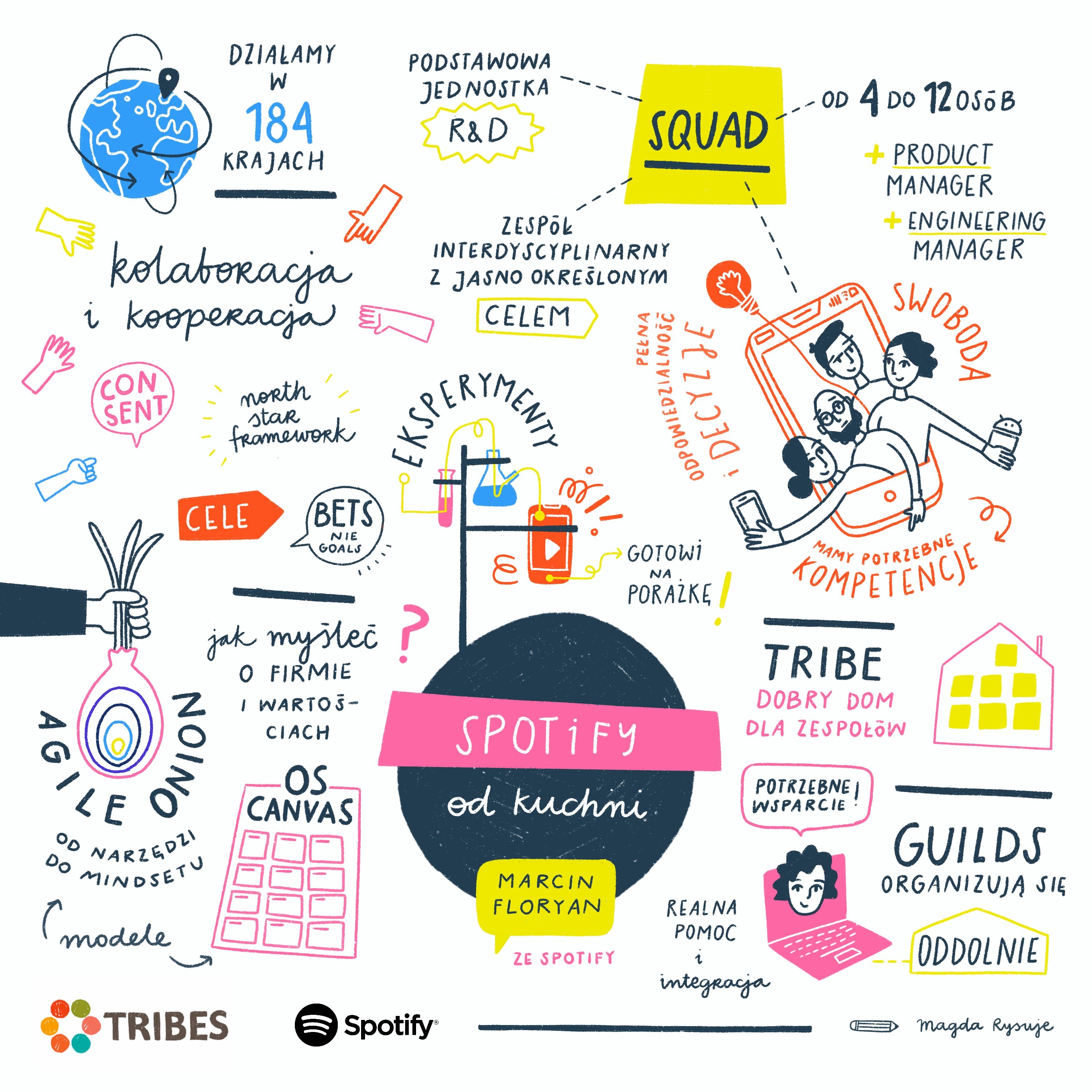 „W Spotify nie ma centralnej organizacji R&D, bo ten model nie sprawdzał się – zaczął się tworzyć pewien silos R&D. Wszystko odbywa się w ramach zespołów, czasem na poziomie Tribes, czasem Squads Niektóre zespoły w ramach dużych Business Units są jednostkami R&D, inne nie, ale wszystkie są przemieszane, by lepiej ze sobą współpracować.”